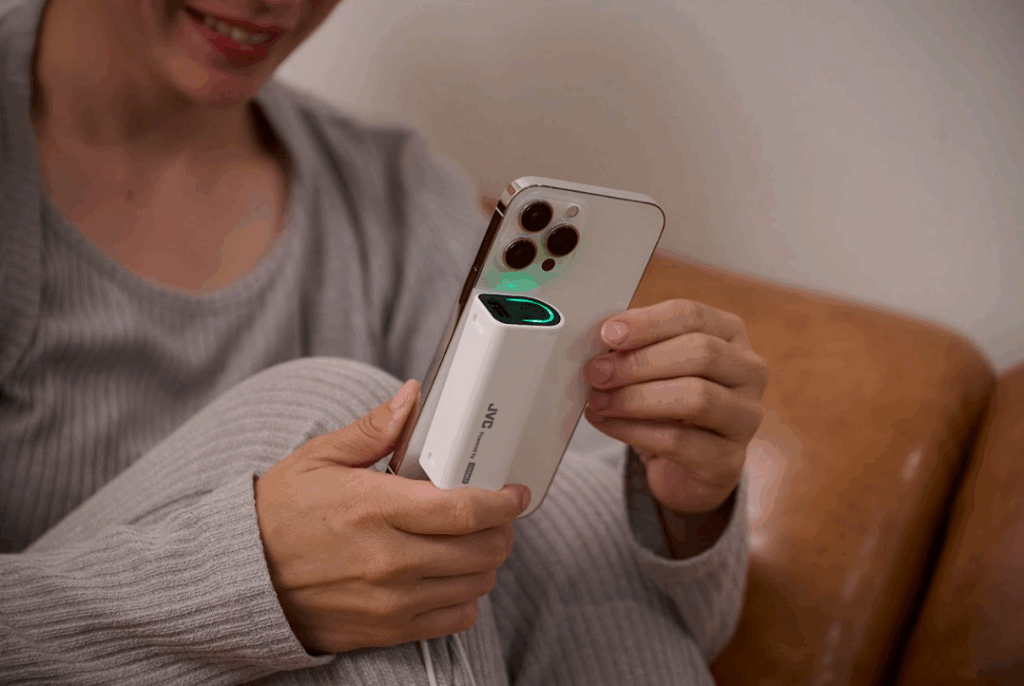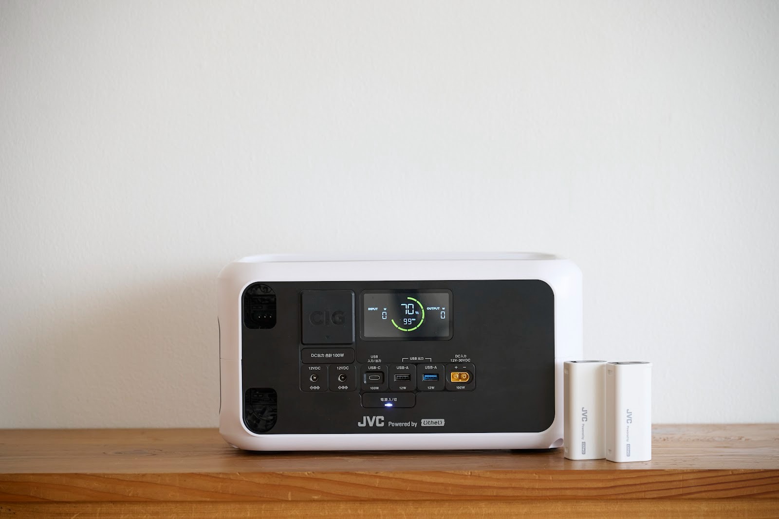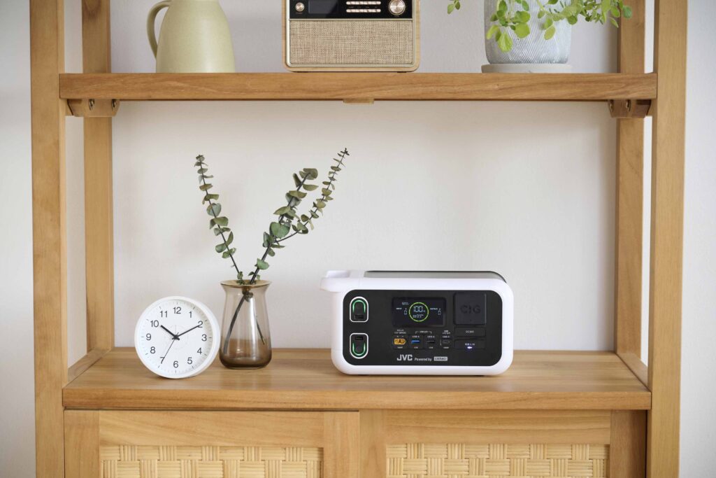 JVC Powered by Litheliのポータブル電源は、モバイルバッテリー2個が付属しており、専用スロットに差し込むだけで(※)簡単に充電できます。ポータブル電源は、安心・長寿命なリン酸鉄系リチウムイオン電池(充放電4,000回)を採用し、長期間使用できます。軽量コンパクトで持ち運びやすく、国内メーカーの安心サポート付き。キャンプなどのアウトドアやオフィスワークはもちろん、災害時の備えとしても活躍します。