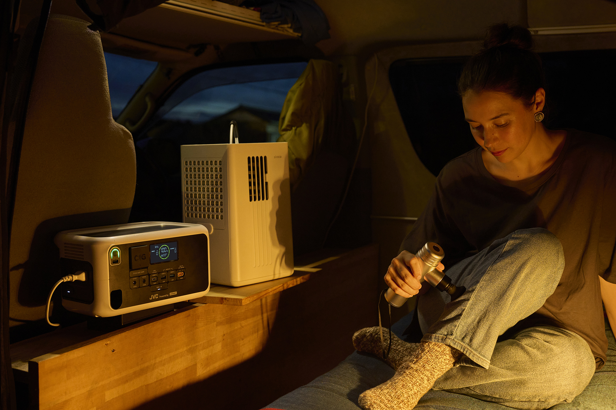 モバイルバッテリーひとつで使えるから実現できる、車内でのセルフケア